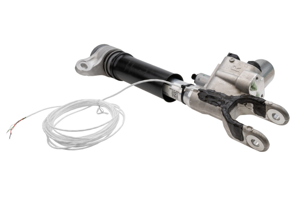 Vervangt de standaard bouten tussen de schokdemper en de fusee door speciaal ontworpen breekpennen om de krachten in de ophanging te meten, waardoor direct inzicht wordt verkregen in de belastingspaden van de schokdemper.